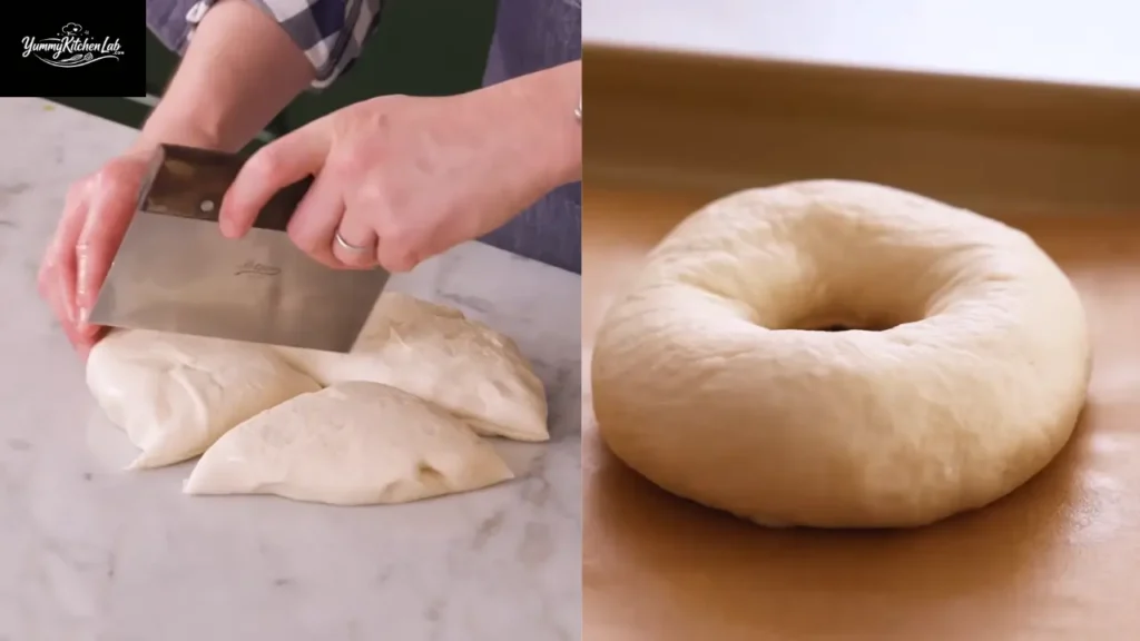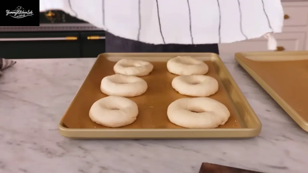 Place the shaped bagels on parchment-lined, lightly greased baking sheets, leaving about two inches between each one. Cover loosely and let them rest for 20 minutes. They’ll puff up noticeably during this time.