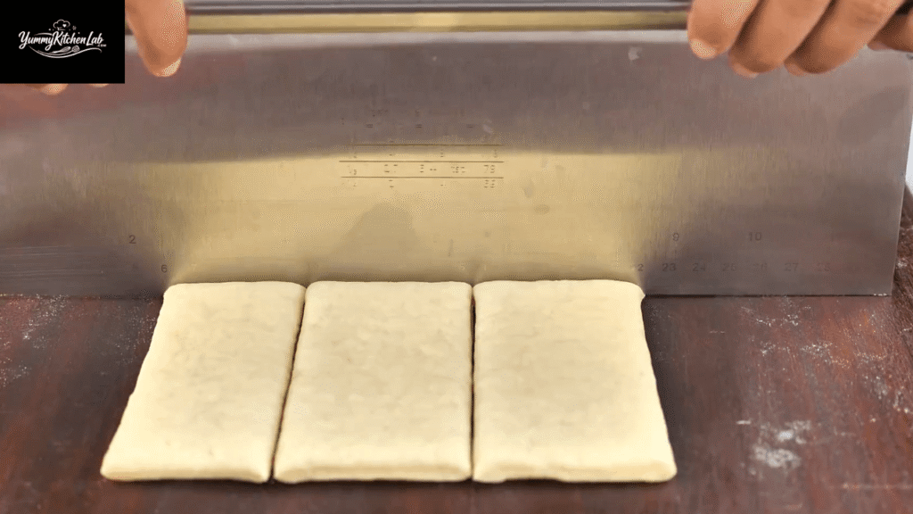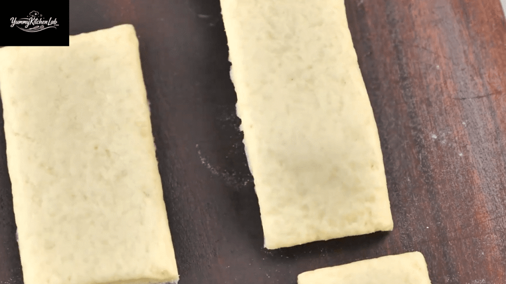 • Roll dough to ½ inch thick and cut into 4×1.5-inch rectangles